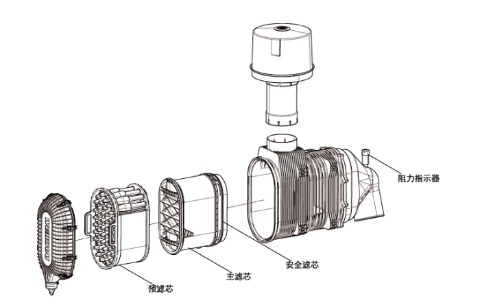 目前國(guó)四非道路發(fā)動(dòng)機(jī)較多的使用直通式空氣濾清器,其結(jié)構(gòu)與前期國(guó)三使用的93空濾不同?,F(xiàn)將結(jié)構(gòu)及保養(yǎng)事項(xiàng)分享。